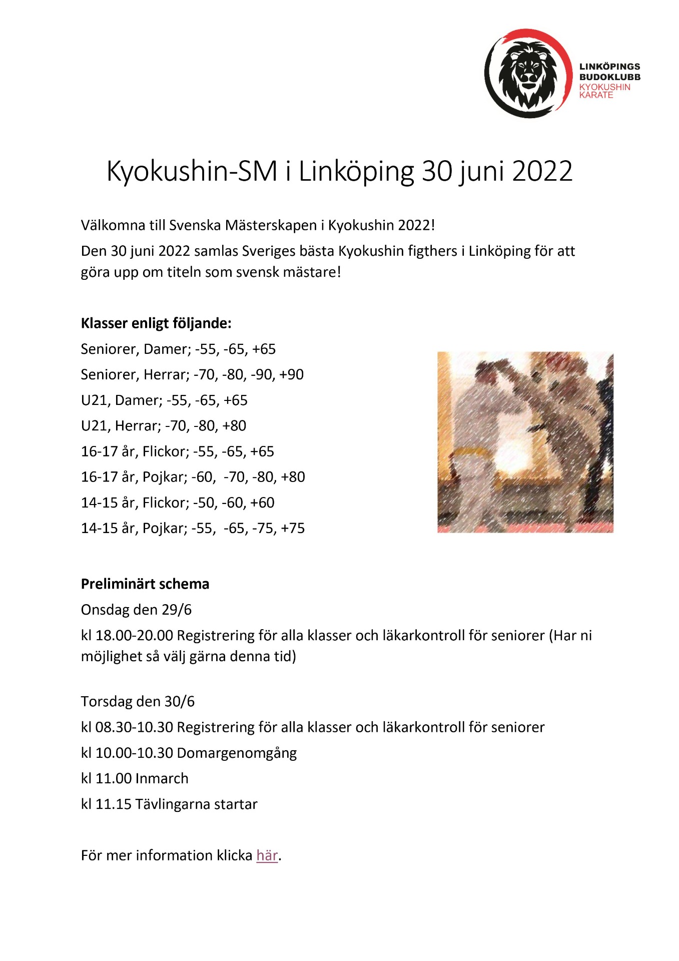 Programmet för Kyokushin-SM 2022 i Linköping är nu fastställt.